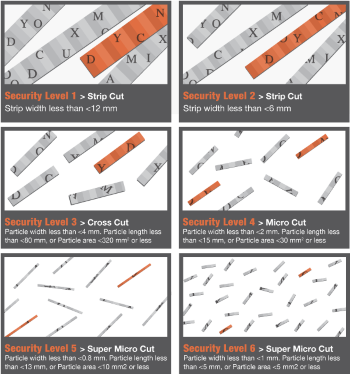 • P6: Extremely fine shredding used for classified material. Approved for top-secret handling in government contexts.
